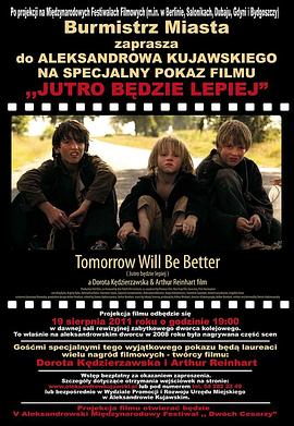 《明天会更好》是多罗塔·肯杰扎夫斯卡导演的作品,发行于2011年(其它),由Oleg Ryba,Jewgienij Ryba,Akhmed Sardalov,Stanislaw Sojka,Kinga Walenkiewicz等主演,中华影视网为大家提供明天会更好完整版免费在线观看,能在手机和电脑上流畅观看明天会更好高清版(HD中字其它原声),同时还支持是手机投屏。 剧情明天会更好讲述了:三个无家可归的男孩,两个兄弟,他们是好朋友,住在俄罗斯的铁路车站。有一天,他们决定去在寻找一个更美好的明天。他们想越过边界偷偷进入波兰,寻找他们想要的一切,可是孩子们还没有家庭,朋友,幸福... ... Dorota Kędzierzawska's film tells the story of three homeless Russian boys who travel to Poland for a better life, with the hope that l ife is different and better somewhere else. The boys wanted to change something in their life.